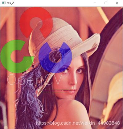 可以通过OpenCV函数cv.add()或简单地通过numpy操作添加两个图像,res = img1 + img2.两个图像应该具有相同的深度和类型,或者第二个图像可以是标量值.