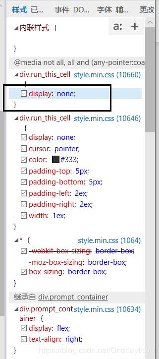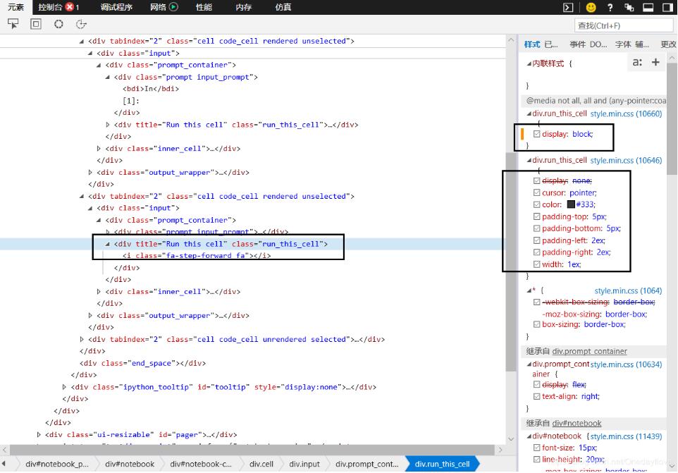 注意 display: block 这个CSS属性,它控制了 运行按钮 的显示,如果把它改为 display: none,那么 运行按钮 就会消失,让我们看看效果