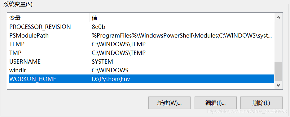 在我的电脑-属性-高级系统设置-环境变量-系统变量中,添加WORK_ON变量,存储你想要创建的虚拟环境的地址。
