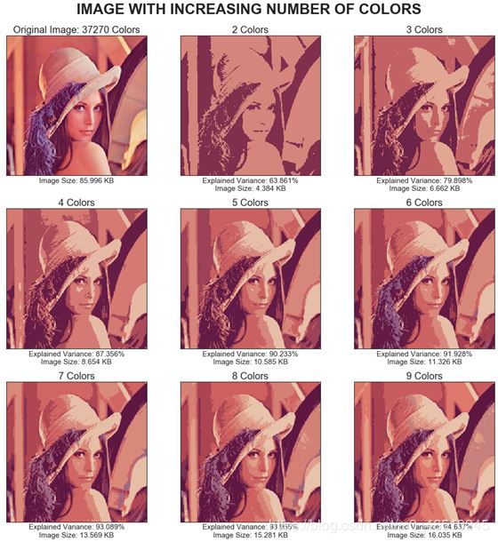 图片大小(以千字节为单位)解释方差图像中存在的颜色数