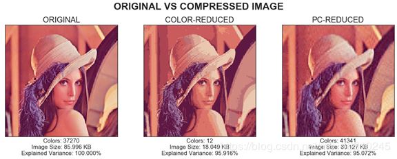 通过使用k-means,我们可以将图像大小减少79.012%,而解释方差为95.916%,这真是太好了! 接下来,我们执行PCA,看看它是否可以优于k-means。