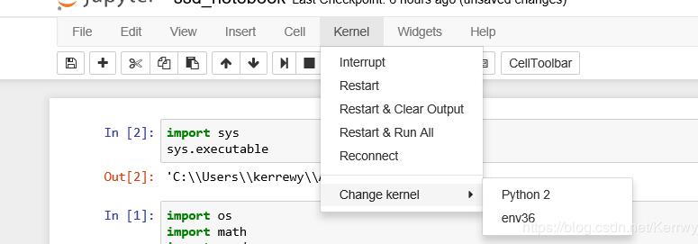 现在用Jupyter Notebook打开代码时,默认是python2.7的kernel,如果想要在Jupyter中选择python27还是python36,可以采用如下步骤: