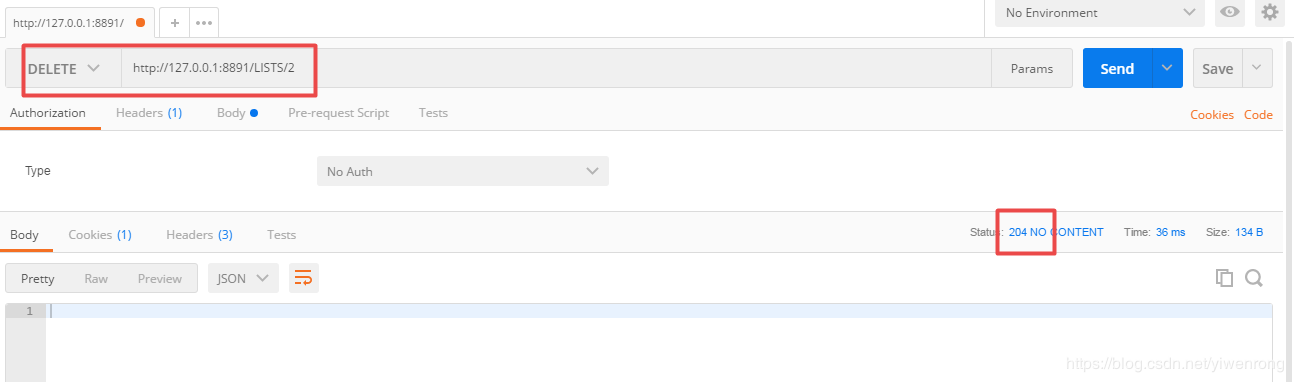 put ,根据url入参值如下图值=2,作为LISTS的下标,删除该值,成功返回状态204