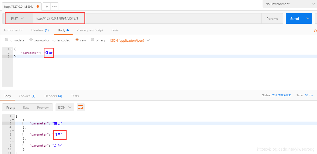put ,根据url入参值如下图值=1,作为LISTS的下标,修改该列表值为请求入参值,登录改为订单