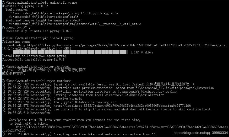 晚上想继续完善python大作业的时候发现jupyter怎么也打不开,一直闪退,刚开始以为是默认浏览器的问题,后来在控制台上输入jupyter notebook报错F:\Anaconda3_64\lib\site-packages\zmq\backend\cffi\__pycache__\_cffi_ext.c(213): fatal error C1083: 无法打开包括文件: “sys/un.h”: No such file or directory 一开始以为是没有un.h文件的问题,重装pyzmq就好了