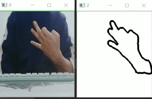 轮廓处理的话主要用到两个函数,cv2.findContours和cv2.drawContours,这两个函数的使用使用方法很容易搜到就不说了,这部分主要的问题是提取到的轮廓有很多个,但是我们只需要手的轮廓,所以我们要用sorted函数找到最大的轮廓。