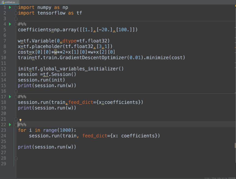 1.在想要分段运行的段前一行(空白行)输入#%%