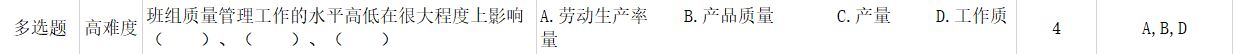 给定选项有:A.劳动生产率 B.产品质量 C.产量 D.工作质量