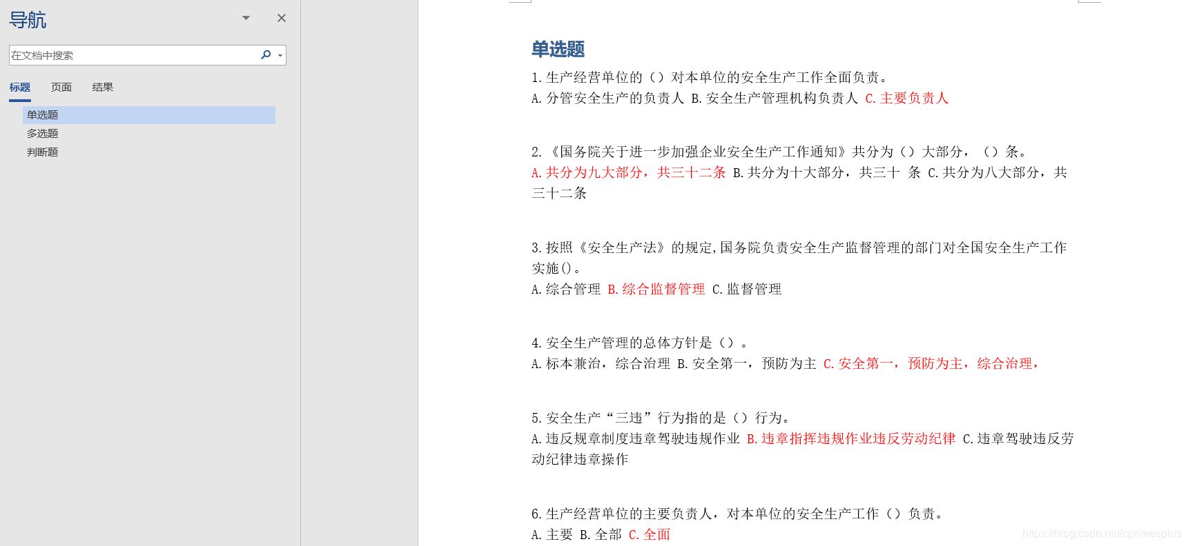 如果单纯的将答案写在每一个题的后面或者开头,这样固然可以,但显然不够直观。一种友好的方式是将正确答案标为红色,这样便能直观的看出。