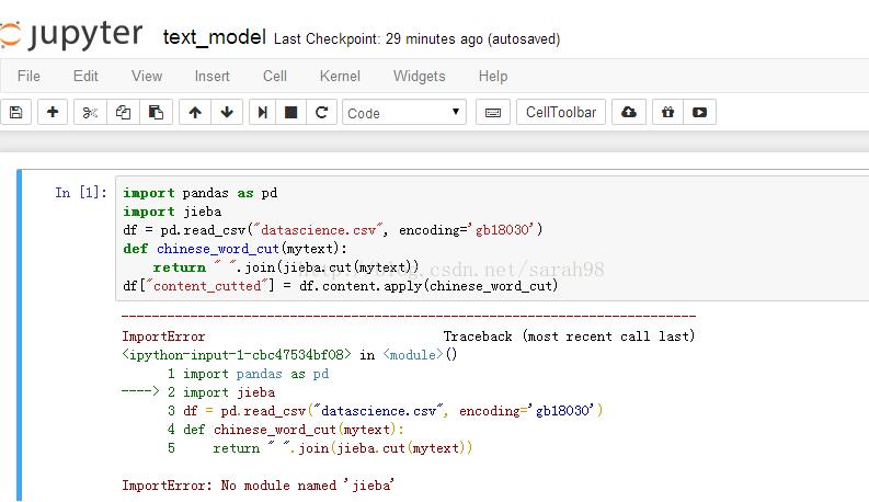 已经用pip install jieba安装好jieba分词工具,但是在Jupyter 里import jieba运行一直提示ImportError: No module named 'jieba'