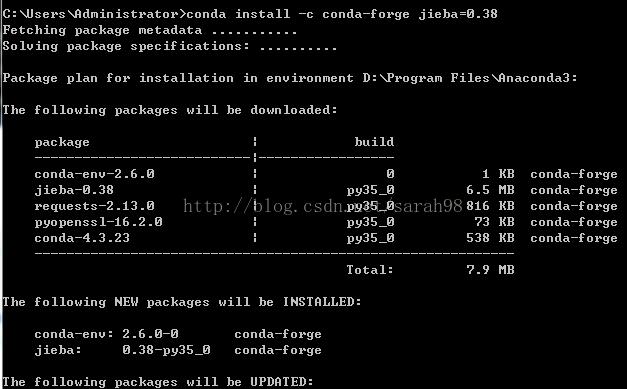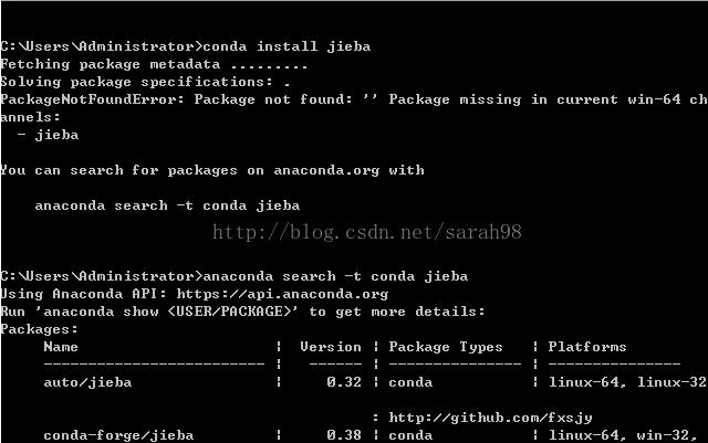 (1)使用命令 anaconda search -t conda jieba查找对应版本