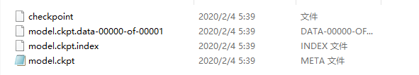 使用tensorflow训练好的模型会自动保存为四个文件,如下