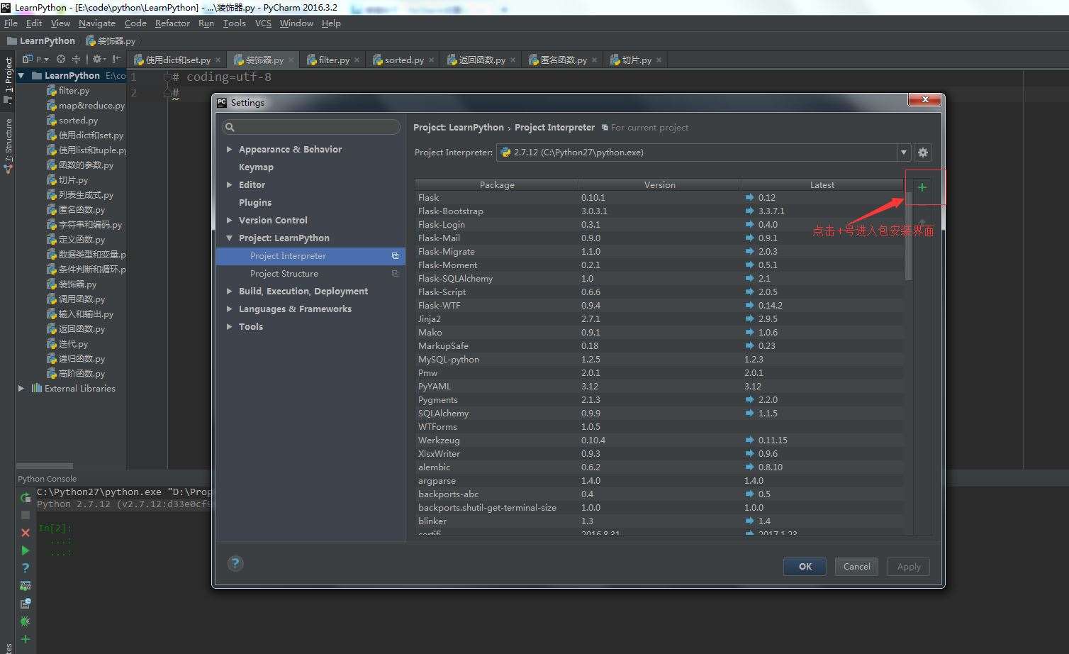 我使用的是PyCharm自带的package安装功能,具有步骤如下图: