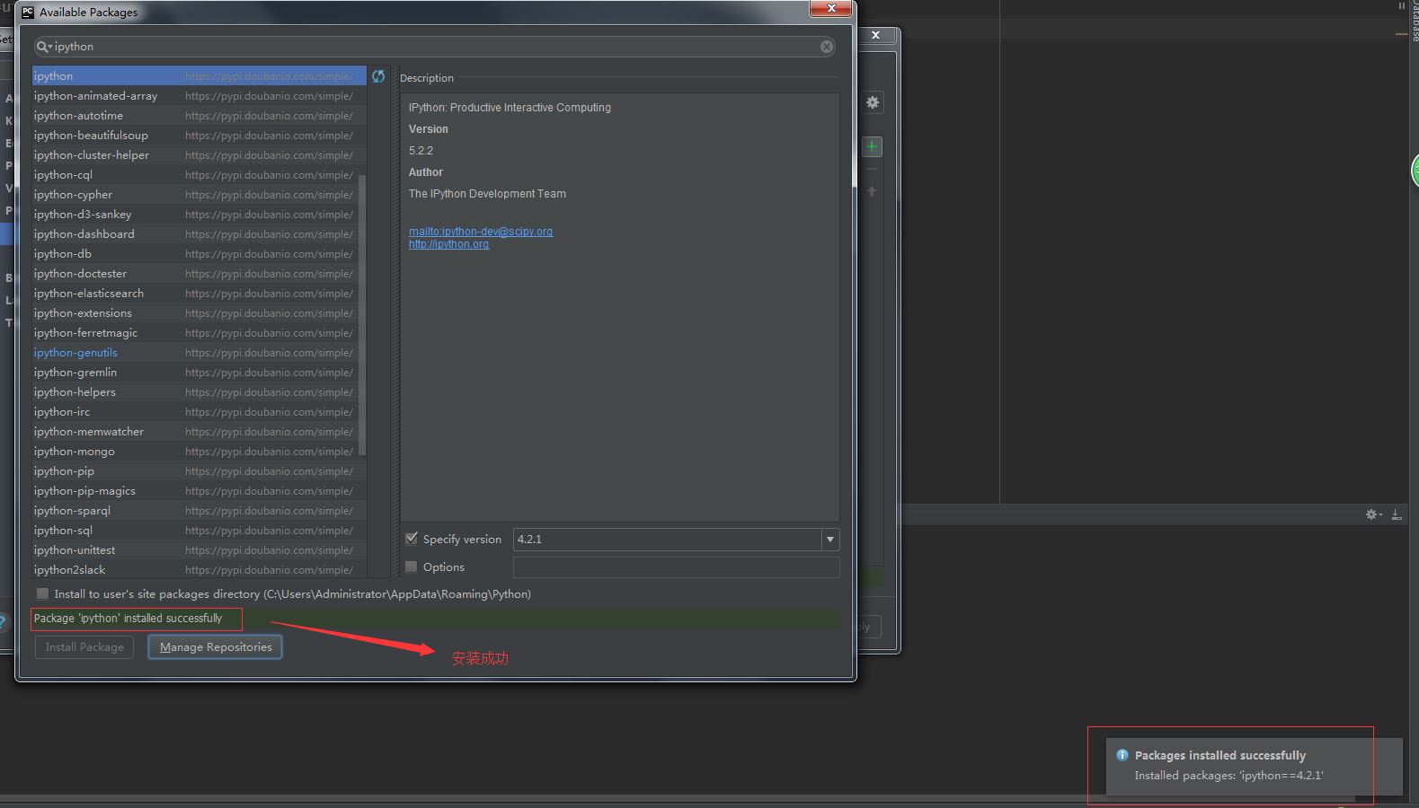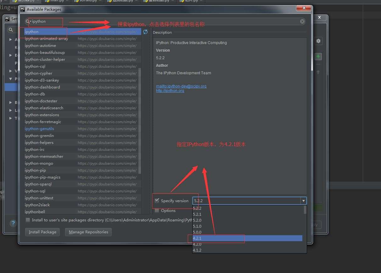 (1)下载安装Ipython,注意:此处必须下载IPython的4.2.1版本!!!!