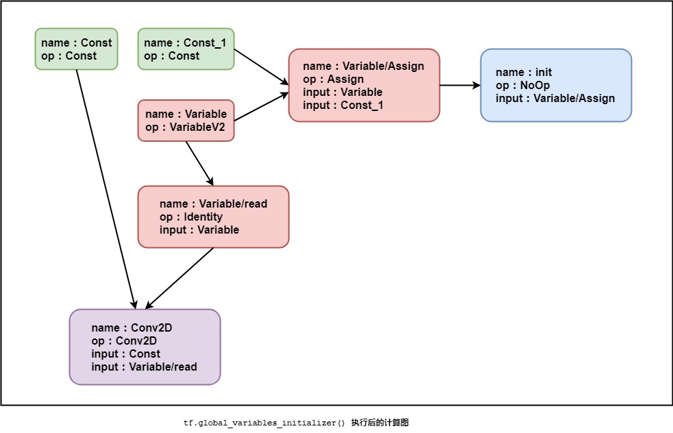 执行完tf.global_variables_initializer()函数以后,计算图如下: