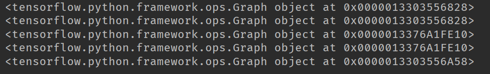 import tensorflow as tf import numpy as np c = tf.constant(1.5) g = tf.Graph() with g.as_default(): c1 = tf.constant(2.0) print(c1.graph) print(g) print(c.graph) g2 = tf.get_default_graph() print(g2) tf.reset_default_graph() g3 = tf.get_default_graph() print(g3)