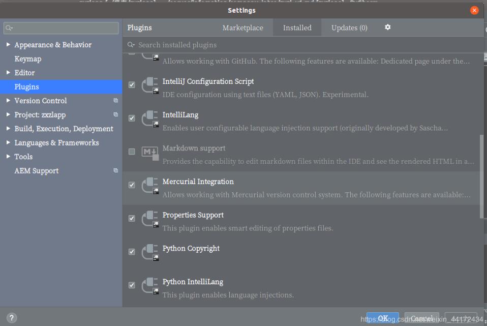 打开File->Settings->Plugins->installed