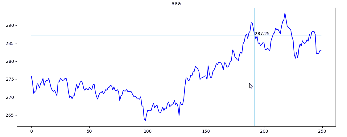 Python+matplotlib进行鼠标交互,实现动态标注,数据可视化显示,鼠标划过时画一条竖线并使用标签来显示当前值。