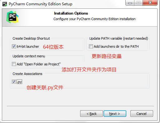 选择安装目录,Pycharm需要的内存较多,建议安装在D盘或者E盘,不建议放在系统盘C盘: