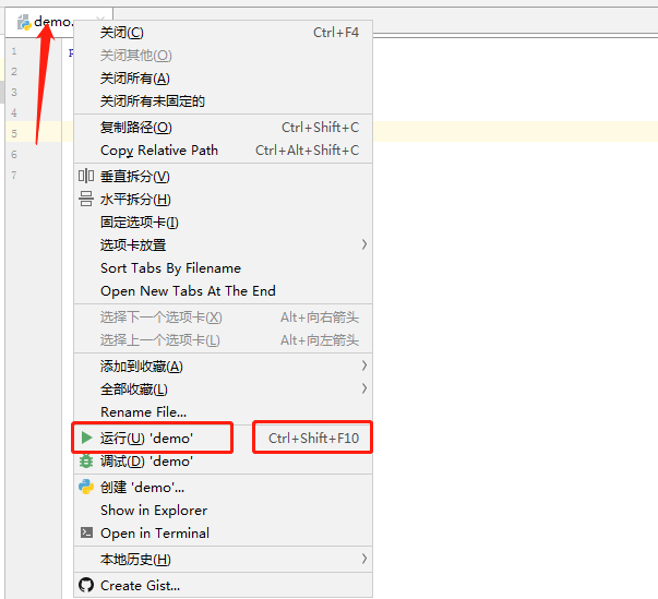 右键点击文件名,再点击下方绿色三角形运行文件,也可以使用后面的Ctrl + Shift + F10快捷键