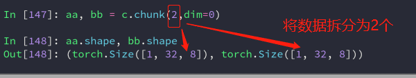 与split不同的是:chunk是指定拆分的个数,将数据拆分为指定个数。