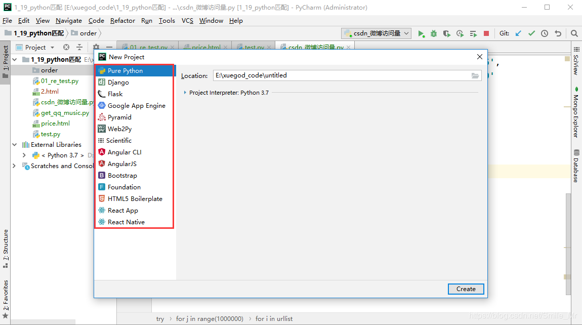 然后点击create,就会直接创建一个文件夹。然后就可以在里面创建相应的py文件。配置Python3.exe。运行项目时用Python3运行。