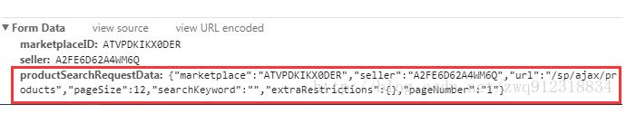 'productSearchRequestData' :'{"marketplace":"ATVPDKIKX0DER","seller":"A2FE6D62A4WM6Q","url":"/sp/ajax/products","pageSize":12,"searchKeyword":"","extraRestrictions":{},"pageNumber":"1"}'