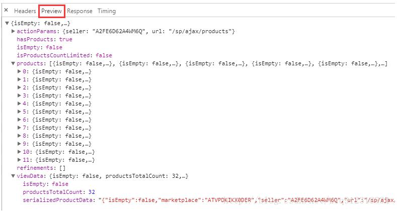 在做亚马逊网站爬取时,当进入商家店铺,爬取店铺内商品列表时,发现采取的方式是ajax请求,返回的是json数据。