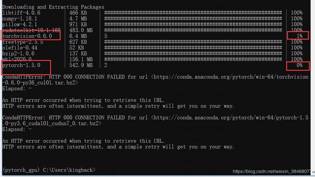 但是在下载过程中torchvision以及pytorch没有下载成功,