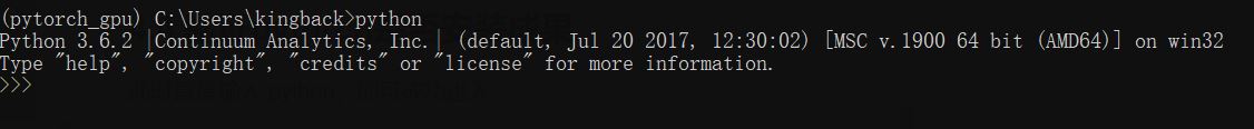 使用如下命令,切换到我们刚刚创建好的pytorch虚拟环境,这样我们避免与其它python环境之间的干扰。
