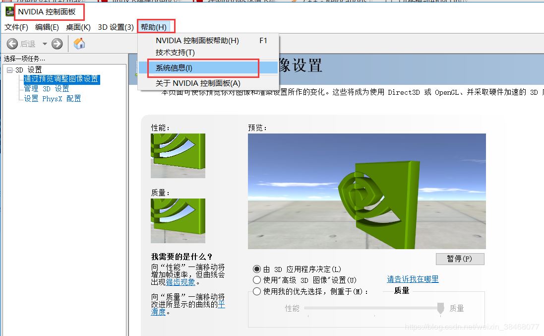 NVDIA控制面板–>帮助–>系统信息