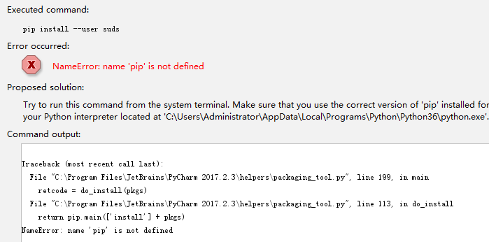 二、紧接着又出现如下错误:NameError: name 'pip' is not defined