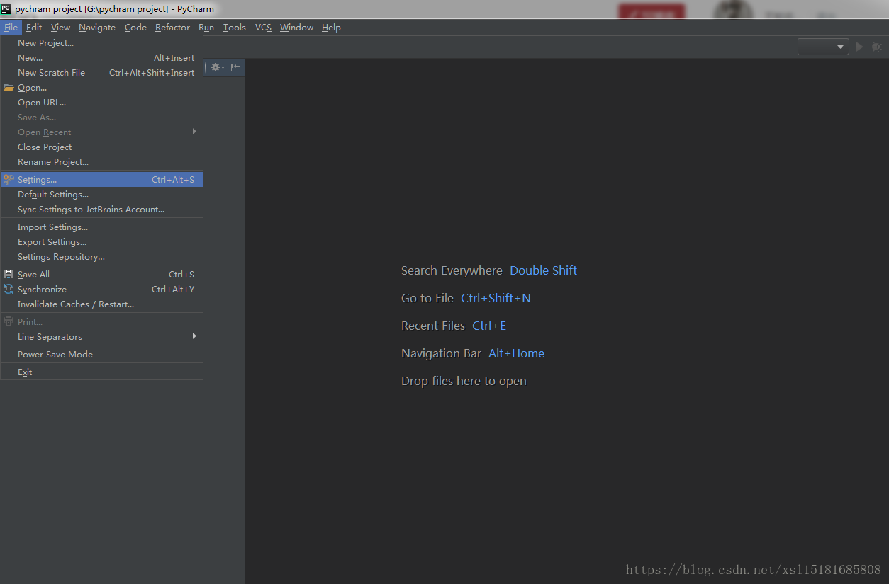 打开pychram,file->settings