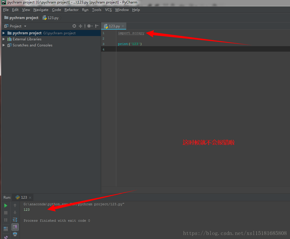 安装成功后,dang当我们再次进入到pycharm编辑器的时候,在确定是anaconda编辑环境的情况下,引入scrapy就不会有问题了