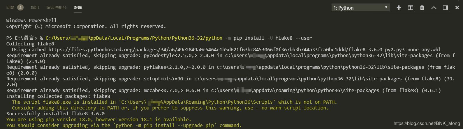 3.输入:pip install flake8,回车等待运行结果即可