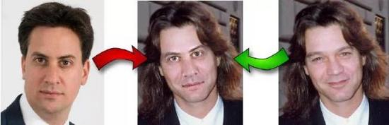 也就是说,这是一个相当简陋的办法,而且解决问题的关键是一个适当的高斯核函数大小。如果太小,第一个图像的面部特征将显示在第二个图像中。过大,内核之外区域像素被覆盖,并发生变色。这里的内核用了一个0.6 *的瞳孔距离。