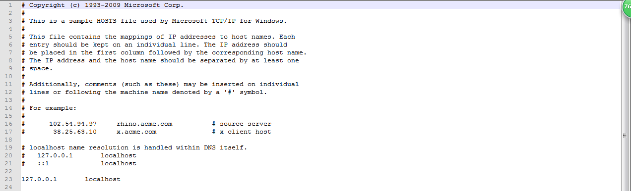 第二步:修改C:\Windows\System32\drivers\etc 目录下的hosts文件;将hosts文件复制到其他文件夹下,打开hosts文件,如下图所示: