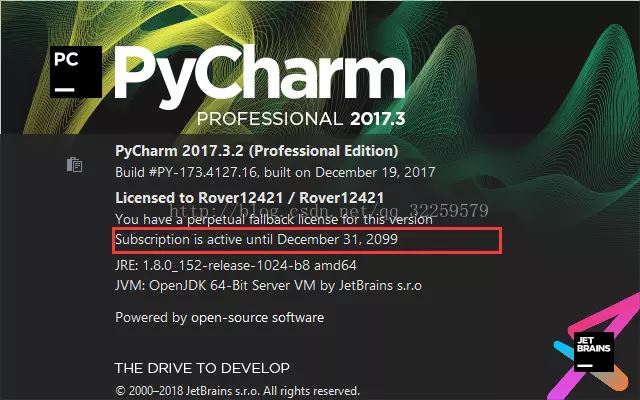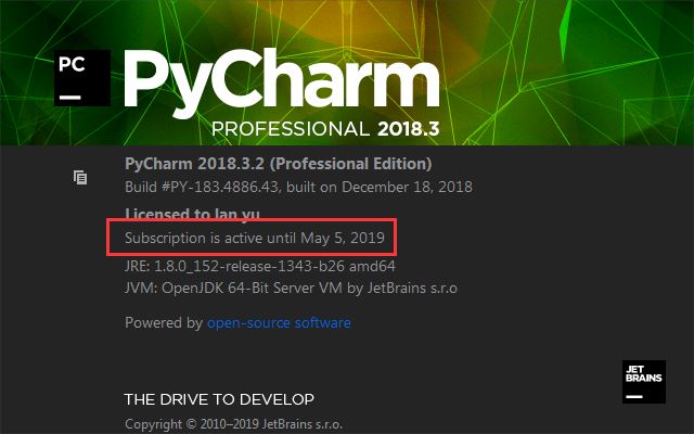 5.验证是否是有效期是否截止到2099年 点击 pycharm的help->about查看: