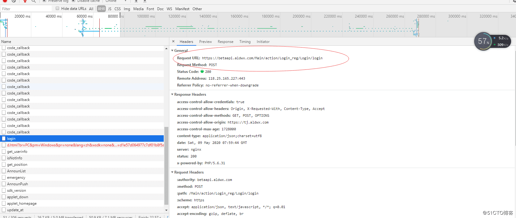 下面我们来看一下登录过程。浏览器退出账号之后,重新登录(账密方式登录),打开浏览器F12,发现实际登录请求的url地址如下图