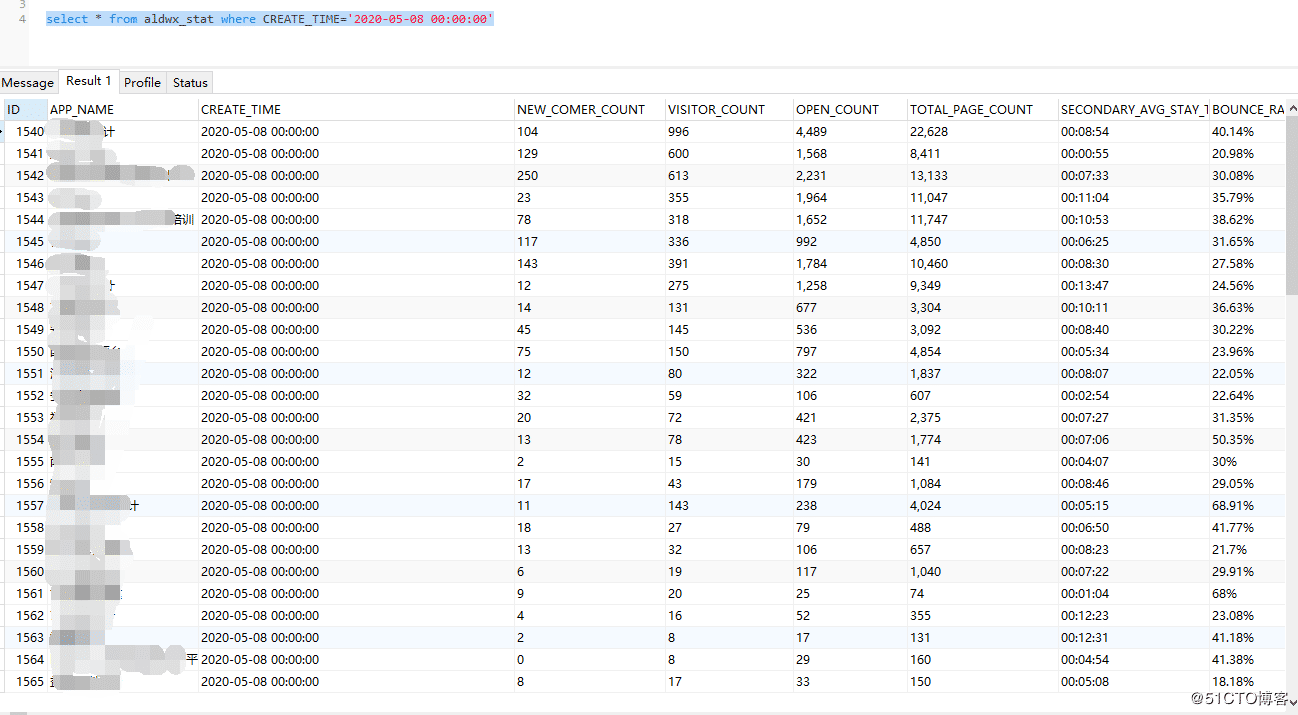 sql = """INSERT INTO operations_db.aldwx_stat (APP_NAME,CREATE_TIME,NEW_COMER_COUNT,VISITOR_COUNT,OPEN_COUNT,TOTAL_PAGE_COUNT,SECONDARY_AVG_STAY_TIME,BOUNCE_RATE,TOTAL_VISITOR_COUNT) VALUES"""