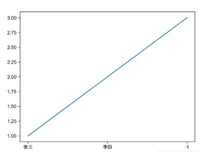 x = ['张三', '李四', '-1'] y = [1, 2, 3] plt.plot(x, y) plt.show()