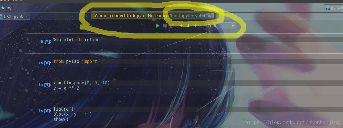 他会说不能连接到Jupyter notebook, 我们不管这个提示,因为我们只想在本地编辑,所以直接点击 run Jupyter notebook