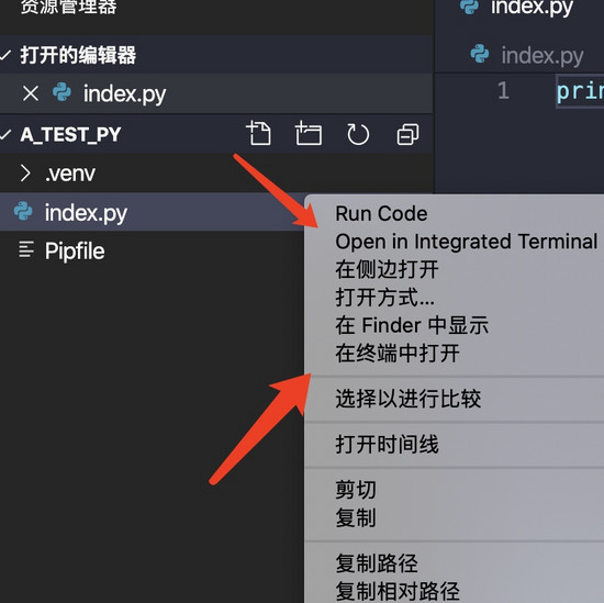 二 py文件右键 在终端中打开 或 Open in Integrated Terminal 时自动激活当前虚拟环境