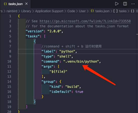 一 使用Command+Shift+b运行时使用当前虚拟环境的python