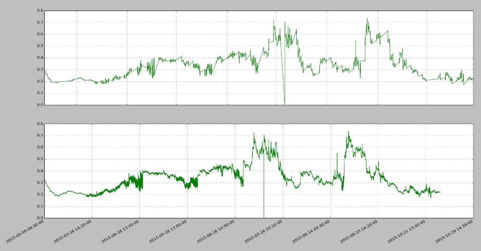 同样一段数据上为原始,下为去掉无数据间隔区间