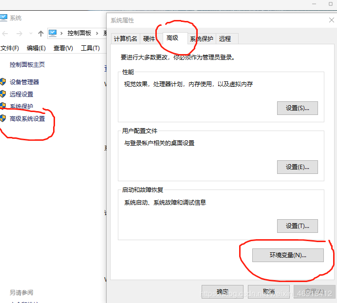 1、我的电脑-属性-高级系统设置-高级-环境变量