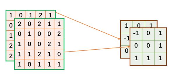 #输入,shape=[c,h,w] input_data=[ [[1,0,1,2,1], [0,2,1,0,1], [1,1,0,2,0], [2,2,1,1,0], [2,0,1,2,0]], [[2,0,2,1,1], [0,1,0,0,2], [1,0,0,2,1], [1,1,2,1,0], [1,0,1,1,1]], ]