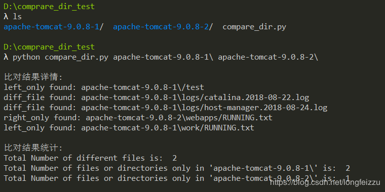 @desc 使用filecmp.dircmp递归比对两个目录,输出比对结果以及统计信息。