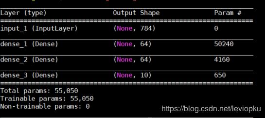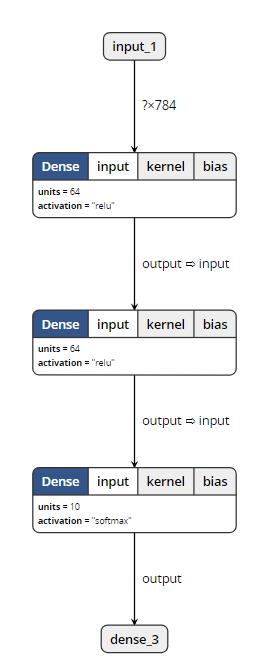 inputs = Input(shape=(784, )) x = Dense(64, activation='relu')(inputs) x = Dense(64, activation='relu')(x) y = Dense(10, activation='softmax')(x) model = Model(inputs=inputs, outputs=y)
