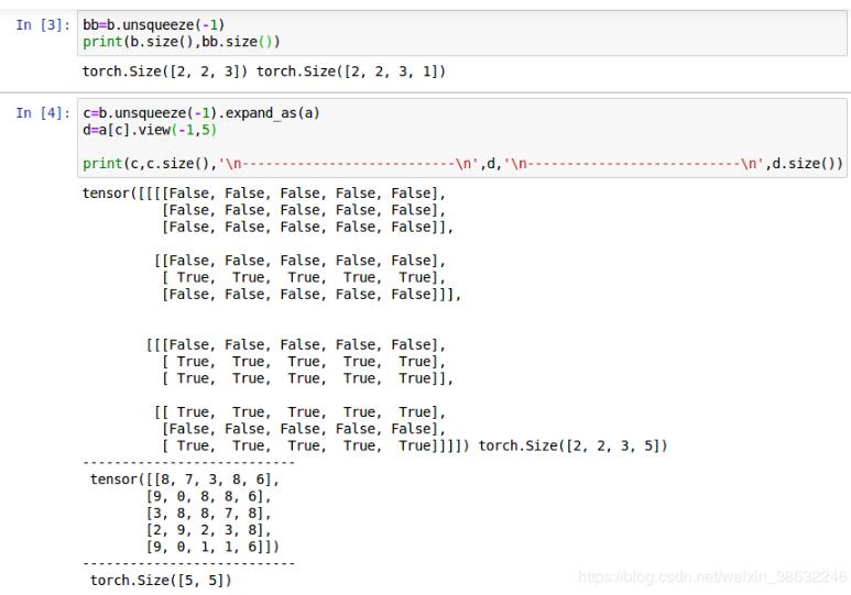 继续上一步,这里使用unsqueeze函数将b的维度扩展一维[2,2,3]------>[2,2,3,1] 这时b的最后一维只有一个元素, .expand_as将最后最后的元素扩展到a最后一维的个数